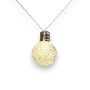 A alça em fio para pendurar a bolinha tem em torno de 10cm no total, podendo facilmente ser ajustado à altura desejada.