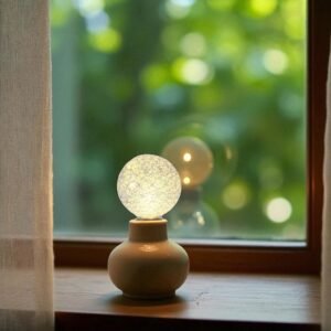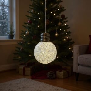 Linda luminária de bolinha com luz própria! Produto 100% artesanal, feito sob medida para illuminar seu natal ou sua casa de forma única. Sem fios, sem bolinhas delicadas que quebram – essa bolinha já vem pronta, com luz interna, basta acionar pelo botão!